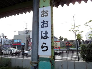 いすみ線 大原駅 補助駅名標。何のデザインもなく、仮名表記のみの至極シンプルなものです。(H25.5撮影) |