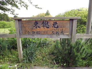 | いすみ線 東総元駅 木製、塗装なしの駅名標。文字は彫り込んであります。この駅だけで見られたオリジナルのタイプです。(H25.5撮影) |
