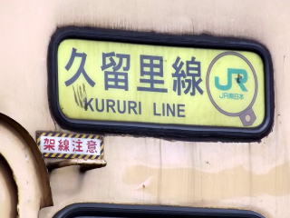 | 車番。この車両は木原線ののち、八高線、相模線、久留里線と移りました。現在関東のJR非電化線も久留里線と八高線北部、烏山線、水郡線くらいです。 | 方向幕には久留里線の文字とJR東日本の社章、そして通票のイラストがあります。 | ||