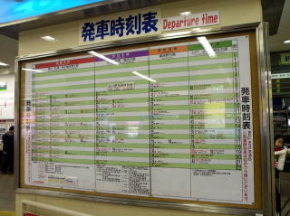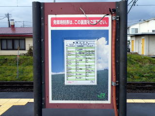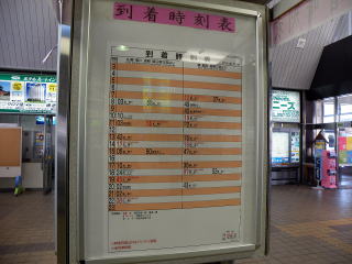 | 宗谷本線 名寄駅 この駅も折り返し列車が多いため、到着時刻表があります。分岐線がなくなり、本数も少ないので旭川駅のもののような巨大なものではありません。(H20.10撮影) |