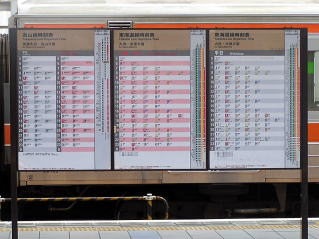 東海道本線 岐阜駅 東海道本線と、分岐する高山本線も合わせた時刻表です。(H16.7撮影) |