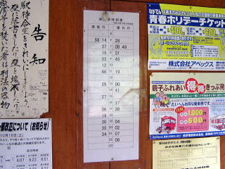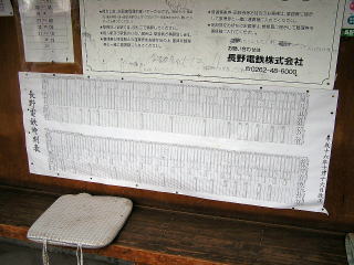 屋代線 雨宮駅 独自の時刻表のほか、全線全列車記載の紙の時刻表も待合室に貼られます。(H16.11撮影) |