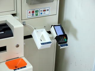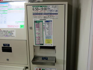 | 福武線 たけふ新駅 タッチパネル式の新型券売機。線内の通常きっぷのほか、回数券、フリーきっぷ、相互乗り入れするえちぜん鉄道三国芦原線の切符が購入できます。タッチパネルのある機器からは領収書が出力され、きっぷは右の機械から出ます。またクレジットカードやスマホのバーコード決済にも対応していますが、これは後付けなのでないでしょうか。(R6.5撮影) |