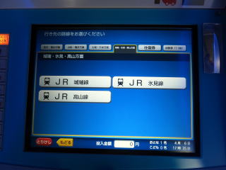 | IR線きっぷ画面。 | JR各線の選択画面。 | ||