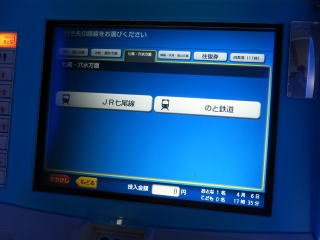 | JR七尾線とのと鉄道の選択画面。 | ICOCAのカード購入画面。IRオリジナルデザインのカードが発行されます。 | ||