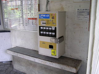 | 紀勢本線 紀伊天満駅 無人駅の改札口に土台を設置してデンと鎮座する駅もあります。140円から650円区間まで買うことが出来ます。(H20.11撮影) |