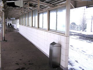 | 北陸本線 美川駅 ホーム上屋端にあった喫煙所。優等待避の際に使用する2番線に停車した場合乗り場にかかる位置です。(H16.9撮影) |