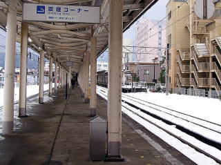 | 北陸本線 高岡駅 改札口から氷見線ホームへ向かう途中、やや広くなったスペースにあります。上屋のかかったちょっとした待合スペースの脇に。まだ恵まれた環境の方です。(H16.2撮影) |