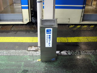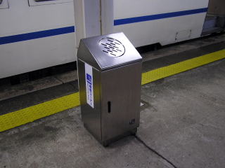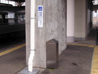 | 北陸本線 黒部駅 喫煙コーナーの表示が灰皿に貼られたもの。乗り場の目の前にありました。(H17.8撮影) |