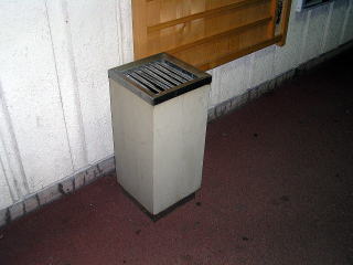 | 北陸本線 木ノ本駅 ステンレスボディのくずもの入れなどが出る前のもの。くずもの入れ上部の灰皿。あまり可燃ゴミとの相性はよくない気もします。(H16.9撮影) |