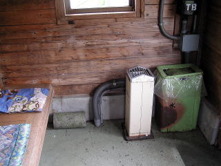 | 樽見線 水鳥駅 新線区間の待合室にも中に吸いがら入れがあります。この後近い時期に外に出されたことでしょう。(H16.7撮影) |