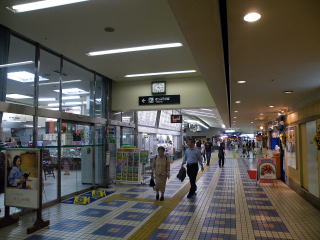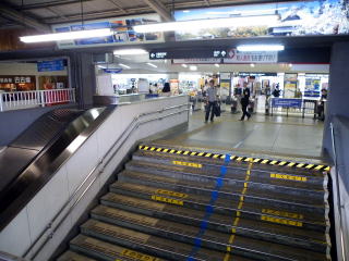 改札から構内に入ると正面にホーム間地下道に通じる大階段がありました。高架駅となった現在は埋め立てられているのでしょう。 |