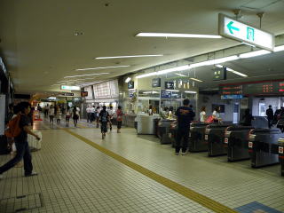 駅舎内。さすがの主要駅で、自動改札機がずらりと並びます。奥行きはなく、幅のスパンの長い駅舎でした。 |