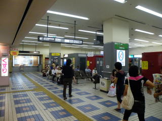 駅舎の端にあった待合コーナー。コンコース、通路と特に隔てられていません。大昔早春に夜行急行「日南」で未明に到着し、乗換えの一番列車を待つ間に凍死するかと思った、個人的にも思い出深い場所です。 |