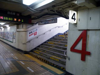 地下道のホーム入口には大きな番線表示があります。現在の高架ホーム入口にも、伝統は受け継がれています。 |
