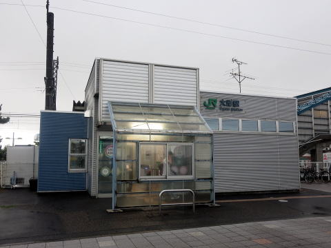 | 裏口にあたる南口。こちらにも小さなロータリーがあります。 | 南口駅舎は北口より更に狭く、まったく余裕がありません。こちらは窓口もなく、定期券対応が面倒そうです。 | ||||||||||||||||