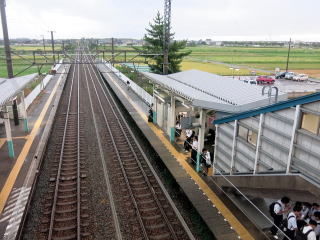 | 阿賀野川河口に近い住宅地にある駅。とは言え駅の周囲は田園地帯です。高校や大学、自動車学校などが近く、学生利用が多い駅です。 |