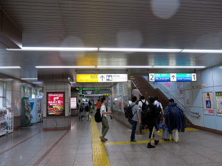 | 駅舎内。改札は1か所のみです。カバーを被せた乗車駅証明書発行機がありますが、使用のほどは不明です。 | 改札内の1階。階段とは別にエスカレーター、エレベーターがあり、トイレもここにあります。 | |||||||||||||||||||