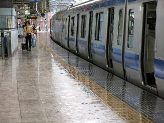 | ホームは1面2線。磁器タイル張りのホームですが、雨の日滑りそうでちょっと気を遣いました。 | ホームは大きくカーブしている部分があります。 | |||||||||||||||||||