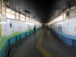 | 裏手に当たる北口。深夜未明の1時15分から4時15分まで閉鎖されます。現在はエスカレーターが増設され、雰囲気が変わっています。 | 駅舎と北口の間で沿線の幹線国道6号線を超えるため、長い自由通路があります。 | ||||||||||||||||
