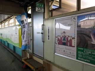 | ホームは1面2線。左手に見える低い築堤は通過となる急行線の路盤です。 | この駅ホーム自体が築堤上にあり、大きくカーブしています。 | ||||||||||||||||