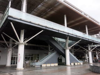 | 駅舎入口。1階は商業施設で、駅コンコースは2階です。クロスするエスカレーターがあります。 | 2階にある駅舎の南口入口。 | |||||||||||||||||||