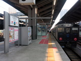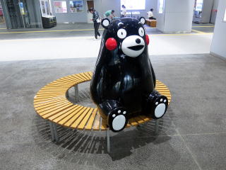 改札内待合の一角にはくまモンベンチがありました。記念撮影する人も多数見かけました。 | ホームは高架で2面6線。1〜3番が鹿児島本線下りと豊肥本線下り、4・6番が鹿児島本線上り方面です。 | ||||||||||||||||||||||||