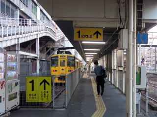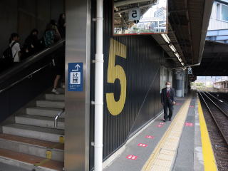 1番線は非電化の行止りホームで指宿枕崎線の乗り場です。指宿枕崎線は4番からも発着します。 | 駅舎からの階段に大きな番線表示があります。 | ||||||||||||||||||||||||