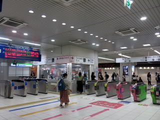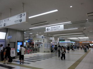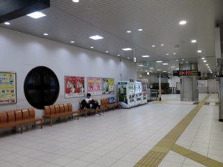 駅舎内、コンコース。左手に在来改札があり、奥に新幹線改札口があります。 | 改札内。右手は在来改札、左手は新幹線への乗換え改札です。 | ||||||||||||||||||||||||