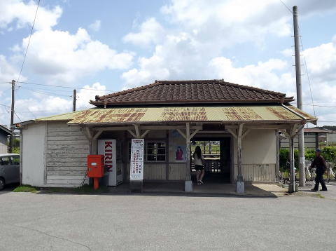 | 高い瓦屋根の古い駅舎で、小湊鐵道標準型の木造駅舎です。入口にトタンの大きな軒があり、真上からはほぼ正方形であるなど特徴的な形状です。平成29年に登録有形文化財となっています。(H25.5撮影) |