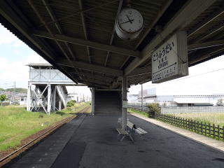 | ホームは小湊鐵道としては珍しい島式ホームで、1面2線です。 | 上屋は長く、雨除け貼りますが、待合室はありません。ホームにベンチが並びます。 | ||||||||||||||||