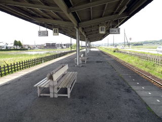 | 他駅に比べ明らかに一世代新しいコンクリート造平屋建ての駅舎。ただしJR線の国鉄期にもよく見られた「国鉄くさい」駅舎で、現在としてはレトロな駅舎です。(H25.5撮影) |