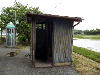 | 駅前には古めかしいトイレと公衆電話もあります。現在入口の上屋からトイレ回りは新しく改築されているようです。 | ホームは1面1線です。 | ||||||||||||||||