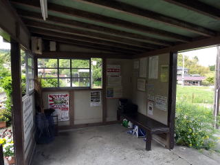 | ホームの待合室。かつては有人駅だったようですが、改札の名残があります。 | 待合室内。つくり付けのベンチがあります。裏手側に入口があります。 | ||||||||||||||||