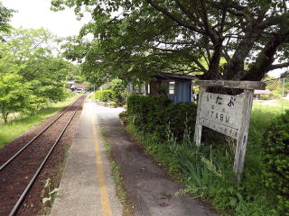 | 路線が内陸の平野部から山あいに分け入りつつある地点にある駅。小さな集落の小駅ですが、駅を覆う桜や駅周囲に菜の花が群生していることから、レトロな車両も相まって春にはフォトジェニックな駅として知られる駅です。 |