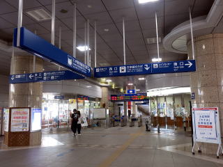 改札左手の待合室。この待合室内からしかアクセス出来ないキヨスクが入っています。土産物がメインのキヨスクです。 |