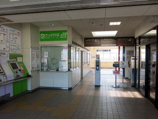 自由通路。駅舎とは分離しており、構造も異なりますが、自由通路は橋上化前から設置されていたものです。 | 駅舎窓口、改札回り。右手に待合があります。長机などもある、落ち着く空間となっていました。 | |||||||||||||||||||