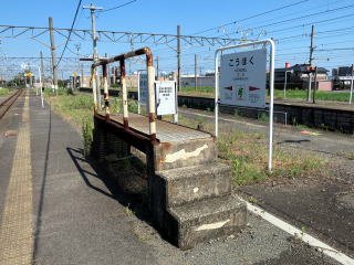 ホームは3面5線。特急列車は主に2・3番、普通列車は主に1・5番を使用しますが、方面別には分かれていません。 | ホーム端にステップがありました。客車の分割のための機関車用設備かと思いましたが、線路から離れすぎてますね、なんでしょう。通票関係にしても離れているような。 | |||||||||||||||||||