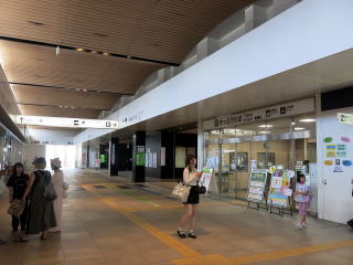 1階はホールとなっており、イベントなどに利用されています。 | 2階は吹き抜けで通路箇所が多く、駅舎前面のガラス面に沿って1階のホールを見下ろせる廊下があります。 | ||||||||||||||||||||||||