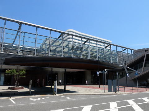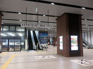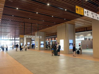 駅舎内。この左手に窓口と在来改札、その奥に新幹線改札や待合室があり、右手は商業施設です。 |