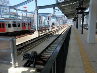 3・5番ホームには切り欠きの4番ホームがあります。4番を除く番線も全て行き止まりのため、ここも特に列車は特定されません。 |