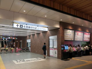 券売機コーナーと在来改札口。改札機は5台並びます。 |