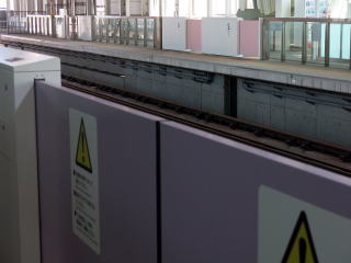 駅名表示板が改札からの上がり口の、ホームが広くなる箇所にひっそりとあります。…個人的にはホームが撮りづらいです。 | ホームドアは上下で色が異なり、上りホームがすみれ色、下りホームがピンク色です。 | |||||||||||||||||||