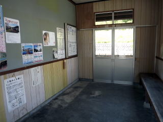 駅舎内。窓口などは閉鎖されて全面掲示板となり、室内スペースも縮小しているようです。 | ホームは1面1線。元々両面ホームの交換駅であった名残があります。 | ||||||||||||||||