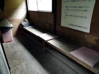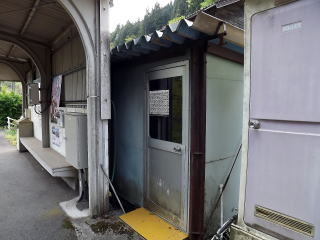 ホームに一部上屋がかかり、待合所となっています。その横にトイレもあります。 | 待合所とトイレの間に倉庫があると思っていたら、これは待合室でした。 | ||||||||||||||||