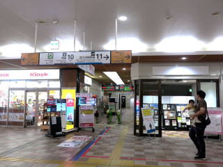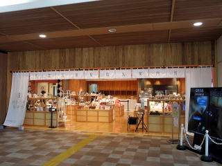 北口駅舎内。右手の施設は以前の出札窓口で、新幹線開業時に南口に移設され、ここはパンフ置き場になっていました。 | 北口にはコンビニ型のキヨスクもありますが、その向かいに大きな物産販売所兼観光案内所があります。 | |||||||||||||||||||