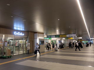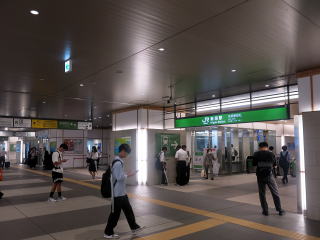 | 2階の自由通路に面する改札口。これは在来東側改札。おそらくメインの改札です。 | 東改札の裏側にも自由通路コンコースがあります。この改札は在来西側改札です。 | |||||||||||||||||||||||