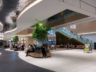 | 駅舎1階の万代広場。待合を兼ね、小規模ならイベントも行えそうな空間です。左右に商業施設の入口があります | 2階は回廊型に通路があり、商業施設「COCOLO新潟」がその東西に面しています。 | |||||||||||||||||||||||