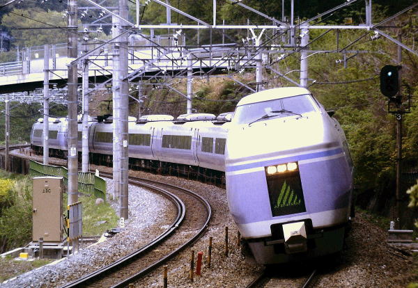 山裾のSカーブを行く上り列車。57と同じ日のものですがやはり記憶が曖昧で、おそらく背後の跨線橋は中央道諏訪南インターへの道路橋ではと思うのですが、地図を見ると線形が違うような…。というわけで、結構特徴のある絵面なのに撮影場所特定できず、という画像です。